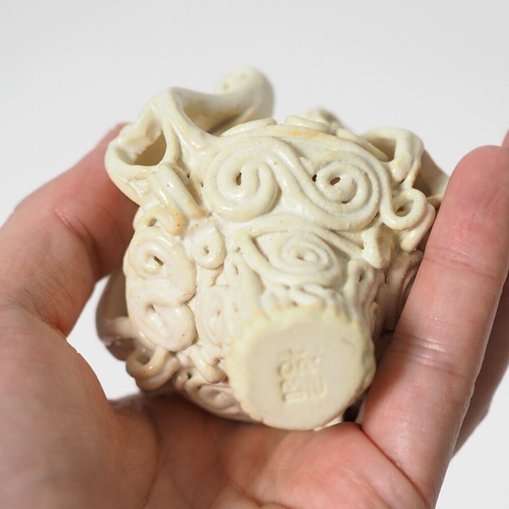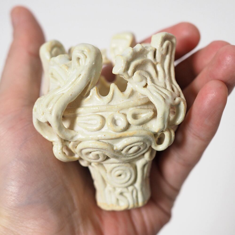 陶器で作成した、縄文式土器 ミニ(白)
